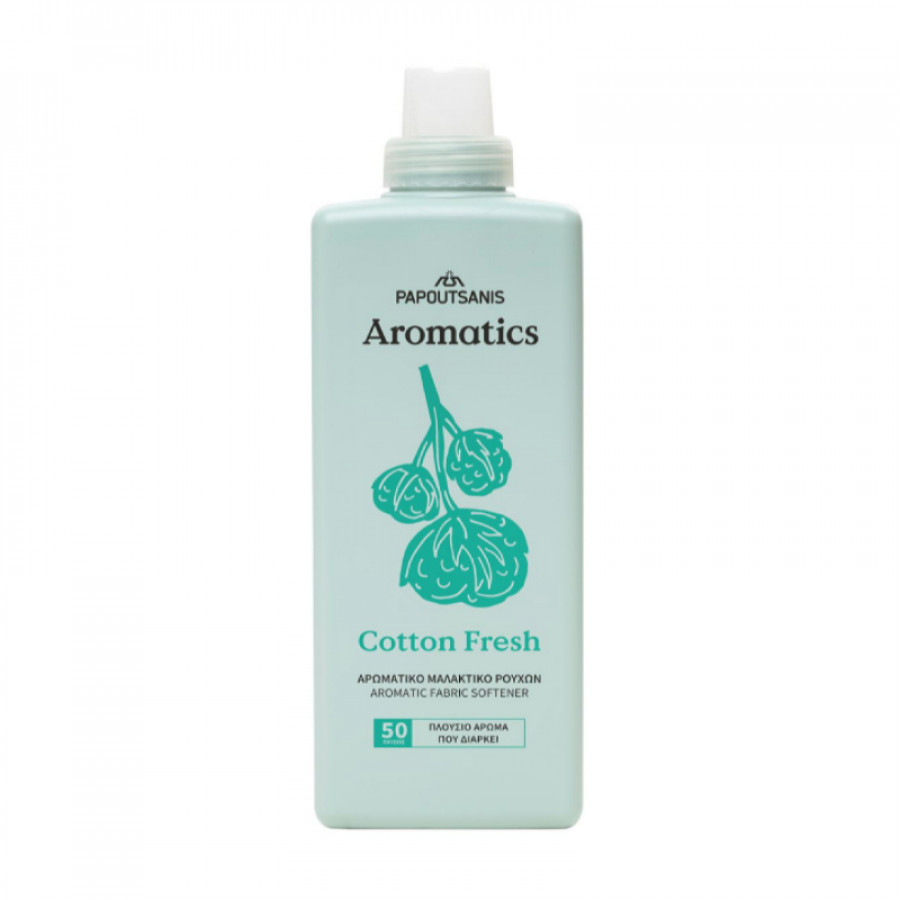 Το νέο συμπυκνωμένο αρωματικό μαλακτικό ρούχων Aromatics Cotton Fresh, με τo φρέσκο, αέρινο άρωμα μεγάλης διάρκειας που έχουμε λατρέψει, έρχεται να αλλάξει την σχέση σου με το πλύσιμο των ρούχων! Το άρωμά του σε αιχμαλωτίζει από τη στιγμή που ανοίγεις την πόρτα του πλυντηρίου και σε μεταφέρει σε ένα ονειρικό «ταξίδι» αισθήσεων και ευεξίας που σε ακολουθεί παντού, φτιάχνοντας τη διάθεσή σου. Η μοναδική του σύνθεση προστατεύει τις ίνες των ρούχων και τους χαρίζει βελούδινη απαλότητα, διευκολύνοντας το σιδέρωμα, ενώ το κομψό άρωμά του που διαρκεί, αγκαλιάζει τις αισθήσεις σου και σε «ανεβάζει» όλη μέρα!